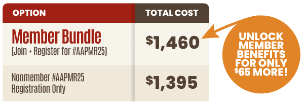 Why just register when you can do both—and save? Join as an AAPM&R member and register for the 2025 Annual Assembly for only $1,460.