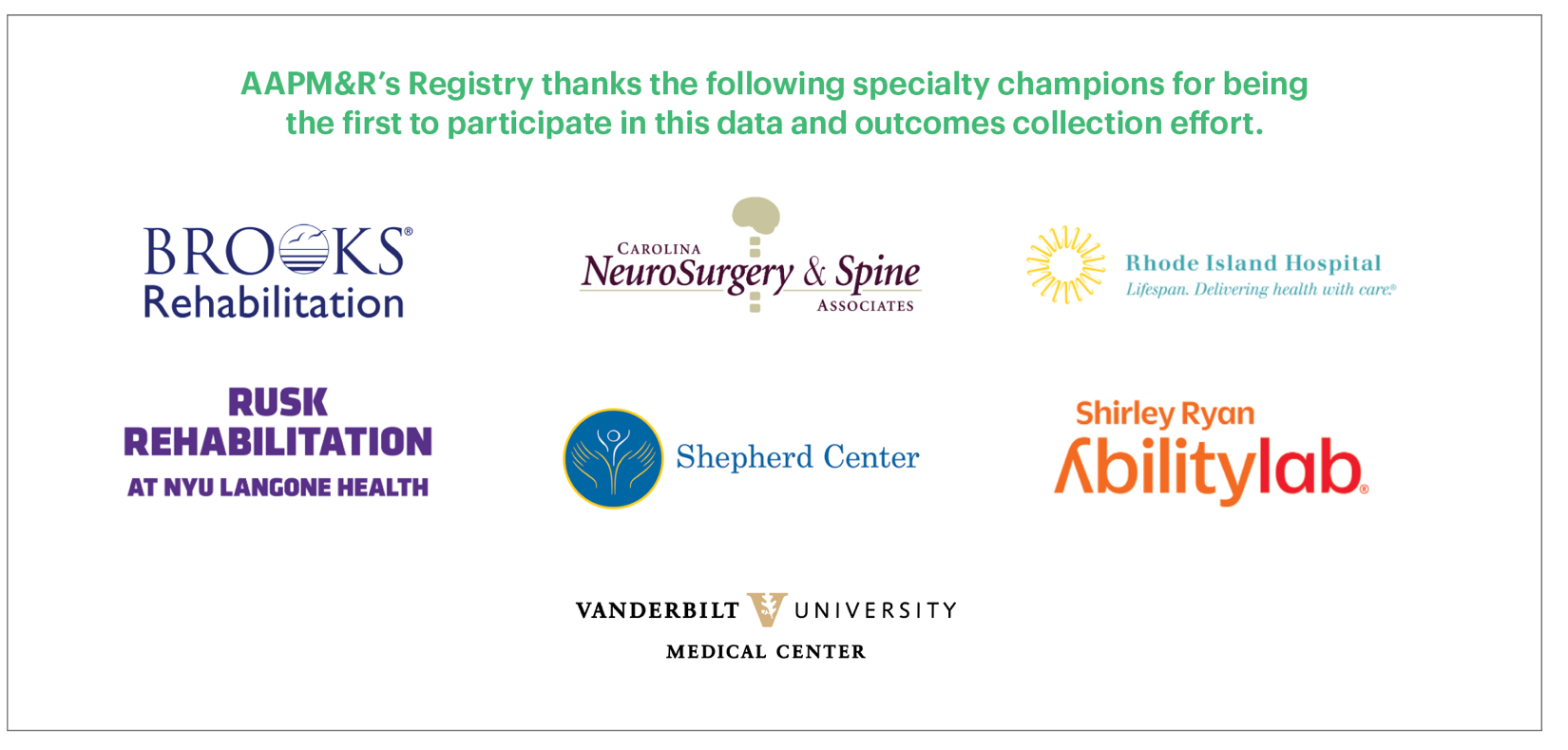 AAPM&R’s Registry is the specialty’s first nationwide clinical data registry which will provide physiatrists the data to demonstrate their value to improve their care by tracking their success on a national scale and studying the most effective treatments for their patients. We are thrilled to currently be working with seven institutions on this data collection effort and are always looking for others to get involved.